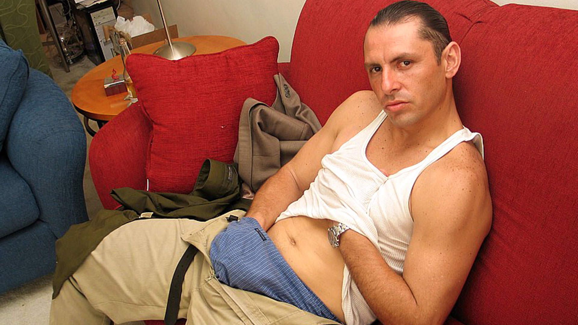 Strapping, 6'4' Venezuelan Max is this week's find. A show-off of epic proportions, once the camera was rolling, his eyes never left it. Before his clothes came off, the boner under those pants was so huge and so rock hard that it could be spotted at twenty paces. When the clothes started coming off, the room got hotter and so did Max. When he turned around to show us his ass, it looked like two sawed-in-half bowling balls trapped inside a pair of tighty whities!Before long, he was stroking so furiously, he was leaking a steady stream of pre-cum, and his dick was so hard it was actually purple! Max had recently discovered the joys of having his ass played with, and although a little late to the game, he had no qualms about telling us all abouthow much he enjoyed it. He took advantage of that pleasure to our delight, playing with his ass until it took him right over the edge. He blasted out a load so thick, so hot we're still not sure where it all came from. Our time with Max was not so much an exercise in masturbation, as it was a primal, deep-seated need to seed!