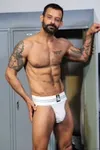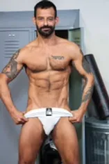 Hardcore, Reality, Jock, Locker Room, Caucasian, Latino, Dark Hair, Mature, Jockstrap, Big Dick, Hairy, Muscular, Tattoos, Anal, Bareback, Blowjob, Deepthroat, Kissing, Masturbation, Rimming