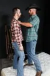 Horny cowboys Dustin Steele and Jay fuck in the warehouse