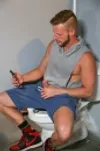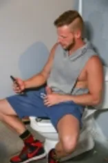 Brian and Alessio meet in the bathroom for some anal fun