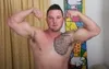 Husky hunk jerks his cock off with spit until he cums hard