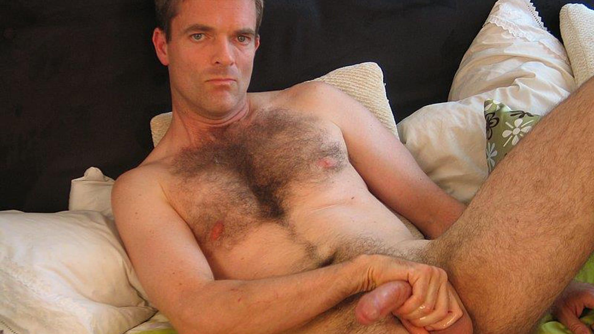 One glance at Loren's face and it is easy to picture him as the teacher's pet in elementary school, the most popular guy in high school and the President of his fraternity in college. He just has the golden-boy turned into a sexy man look to him with that still perfect mane of hair, deep-brown eyes and square leading-man jaw. It is that smile though, a grin that is as boyishly mischievous as it is confidently sexual and brimming with contagious lust that seals the deal. Loren is one MenOver30.com guest we knew had an inner-porn star that just needed the right opportunity to blossom into a field of sexual dreams for all parties concerned. He starts by getting out of his shoes and socks, flicking them off with the barely-restrained defiance of a rebel obliged to have a holiday meal back at home. Loren tugs the neck of his shirt down far enough to expose a hard pink nipple below a luxuriously thick mane of sable-brown fur that goes up to his Adam's apple, fans out across his pecs, and then funnels into a solid line right into his waistband. Digging one hand deep inside his shorts, then doing another exploratory pass, entering from the bottom of the legs then finally playing hide-and-seek with that now very prominent bulge, Loren's entire body from head-to-toe screams out one message: Game On!Sprawling back on the bed in a way that just invites you to come join him, he flashes a solid shot of that hairy pit while lowering the waistband of his boxers with the other hand. Loren shows the top of that thick bush and even thicker base of what promises to be a slab of beef just as fine as the man himself. Moving onto all fours, he drops the back of his shorts with the showmanship of someone unveiling the latest best-in-class roadster at a European auto show. Rubbing his cock with his shorts, Loren does not want to show himself at half mast, and in the process of going to full arousal, he milks the pleasure with every inch of skin. The real estate between his legs is clearly one big, hair-covered erogenous zone and this is one man who knows his own turf very very well. Moving to the shaft, gently shaking it back and forth, things are definitely growing. But it is when he holds his legs up over his head with one hand and rubs the head of his cock on his own hole with the other, critical mass is achieved and Loren goes instantly from porn star wanna-be to a master jacker more-than-worthy of being captured at work. Grasping it at the base with a vise-like grip, Loren's cock is now a fat, cut, throbbing tower of pleasure that has become the center of his universe. Coming in closer, we see his dick is incredibly thick, perfectly straight and topped by a flaring mushroom shaped head. The head is as high as it is wide with a gentle flare to the top and is genetically engineered to ease into an orifice lucky enough to be invaded by something so perfect. With but a two-finger hold now, the cum spurts out of that cock like a dam that has sprung a leak and, rather than reach for a towel, Loren rubs the load all over his chest and up to his neck with one hand while giving his hole a once over in the ultimate example of just how beneficial multi-taking can be.